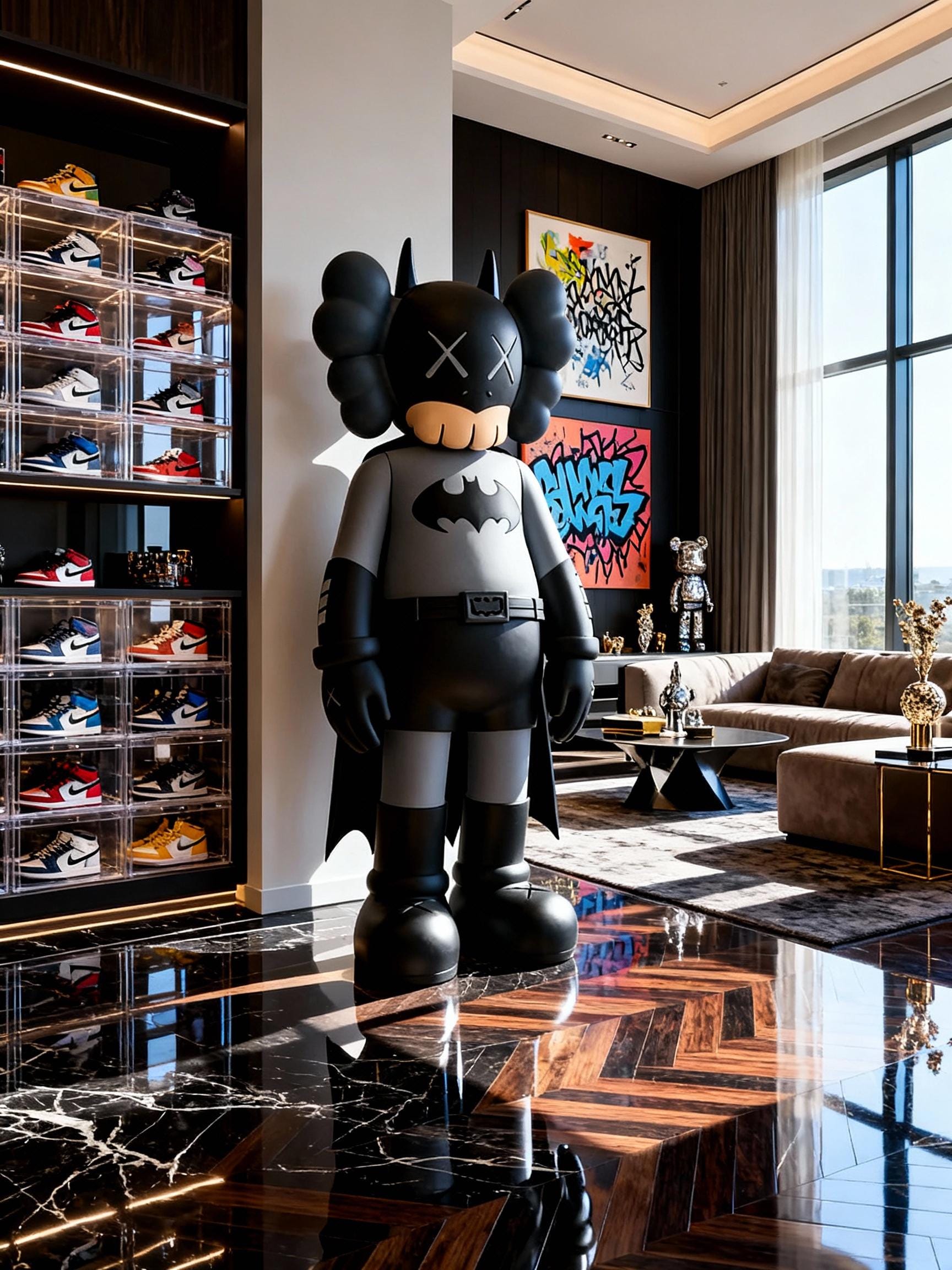 ✅ Batman Meets KCaws: A creative fusion of two cultural icons — the dark knight silhouette in the recognizable Kaws form.
