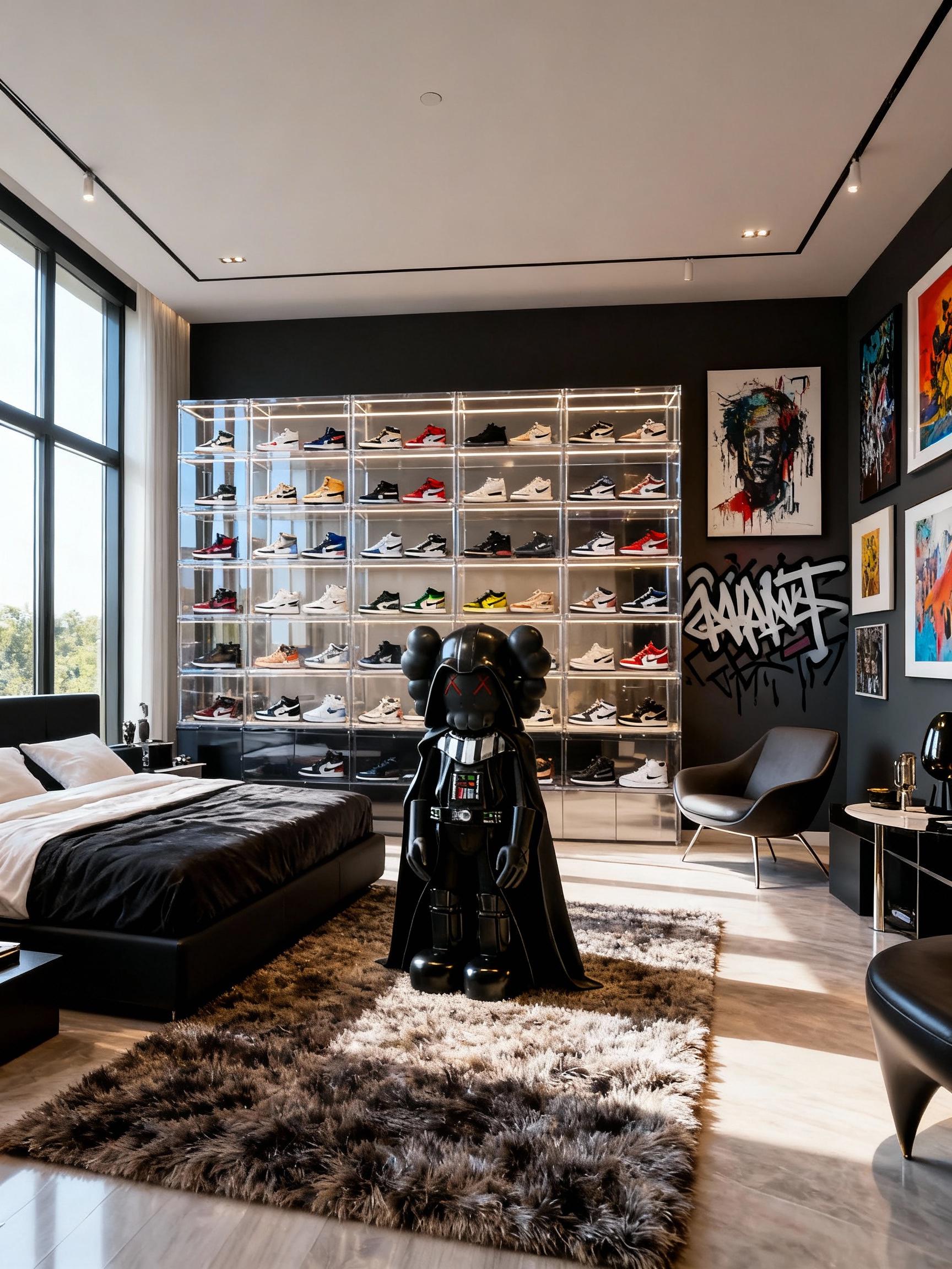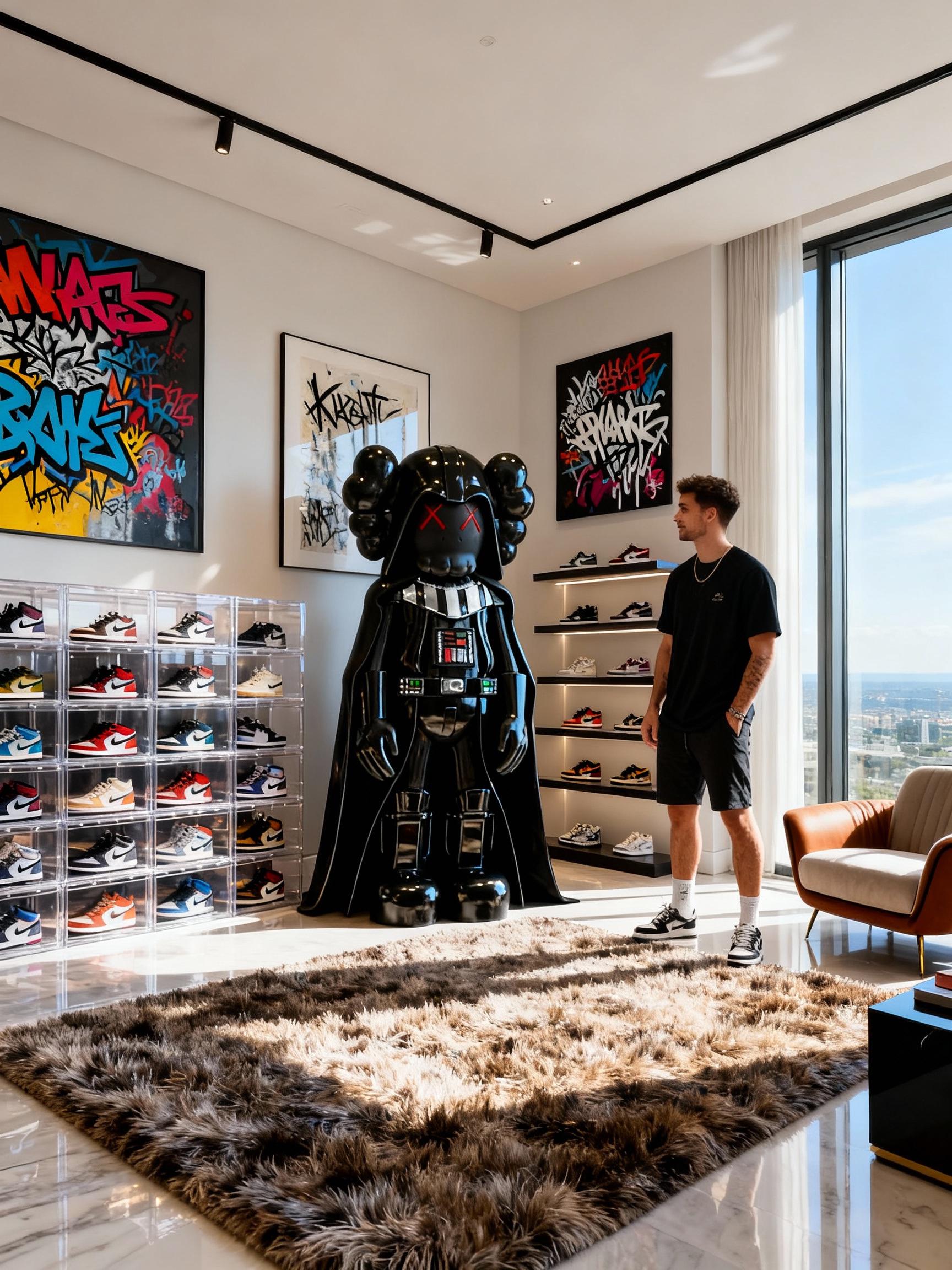This KCaws Darth Vader style statue is a fusion of iconic sci-fi culture and contemporary pop art design. Available in two impressive sizes — 100 cm and 190 cm — it's a powerful statement piece for collectors, art lovers, or anyone looking to bring bold energy into their space 🖤⚡