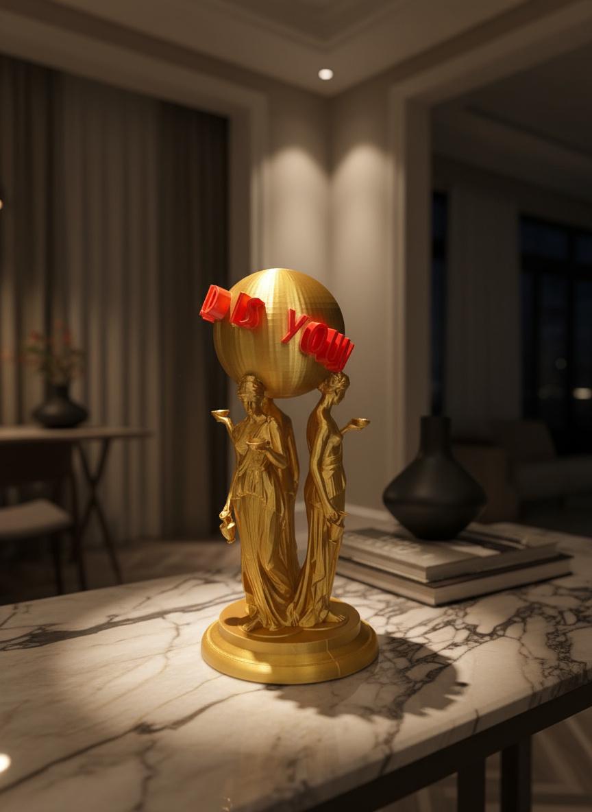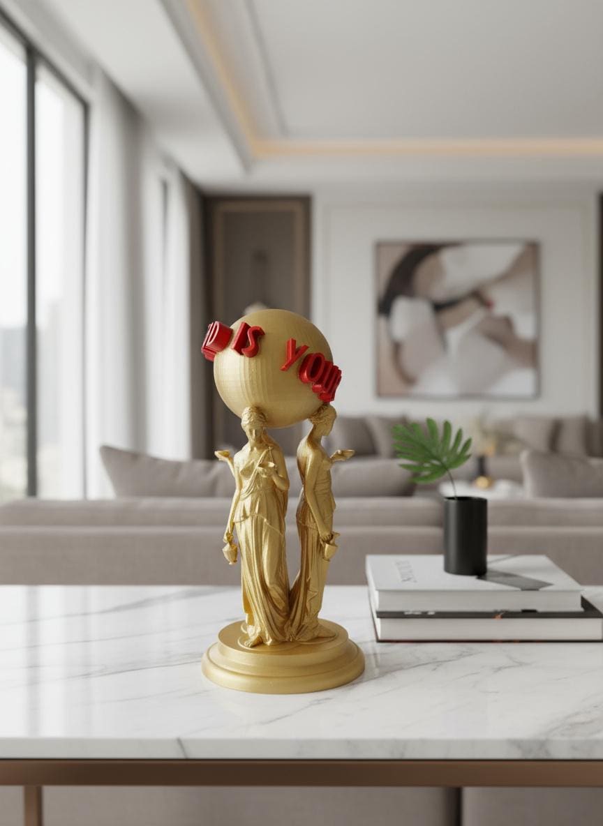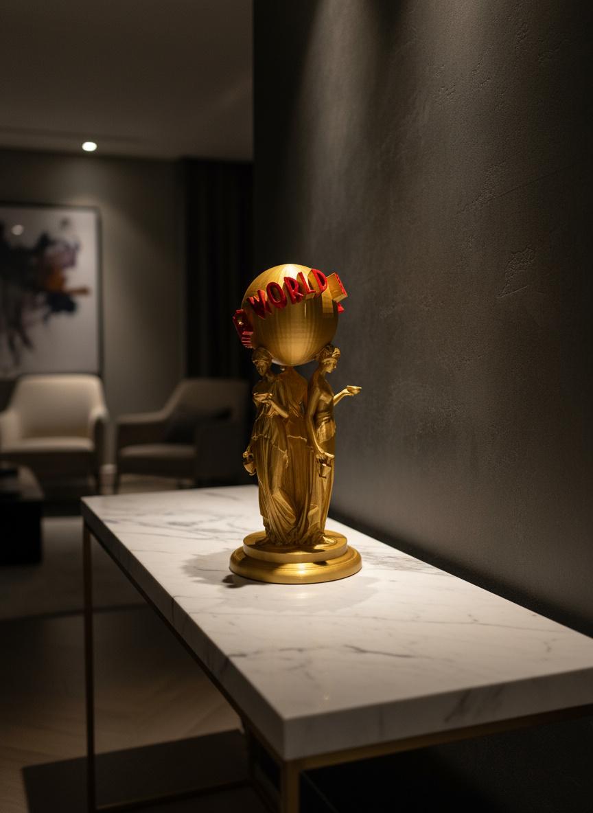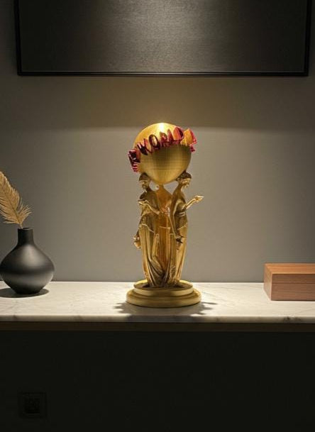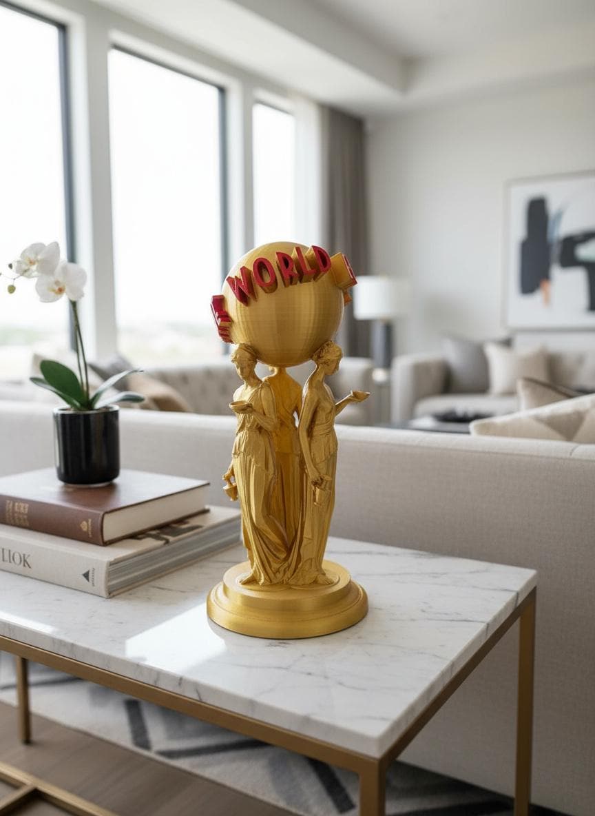 🏛️ Crafted with detailed artistry, showcasing three women figures supporting the globe, symbolizing elegance and power