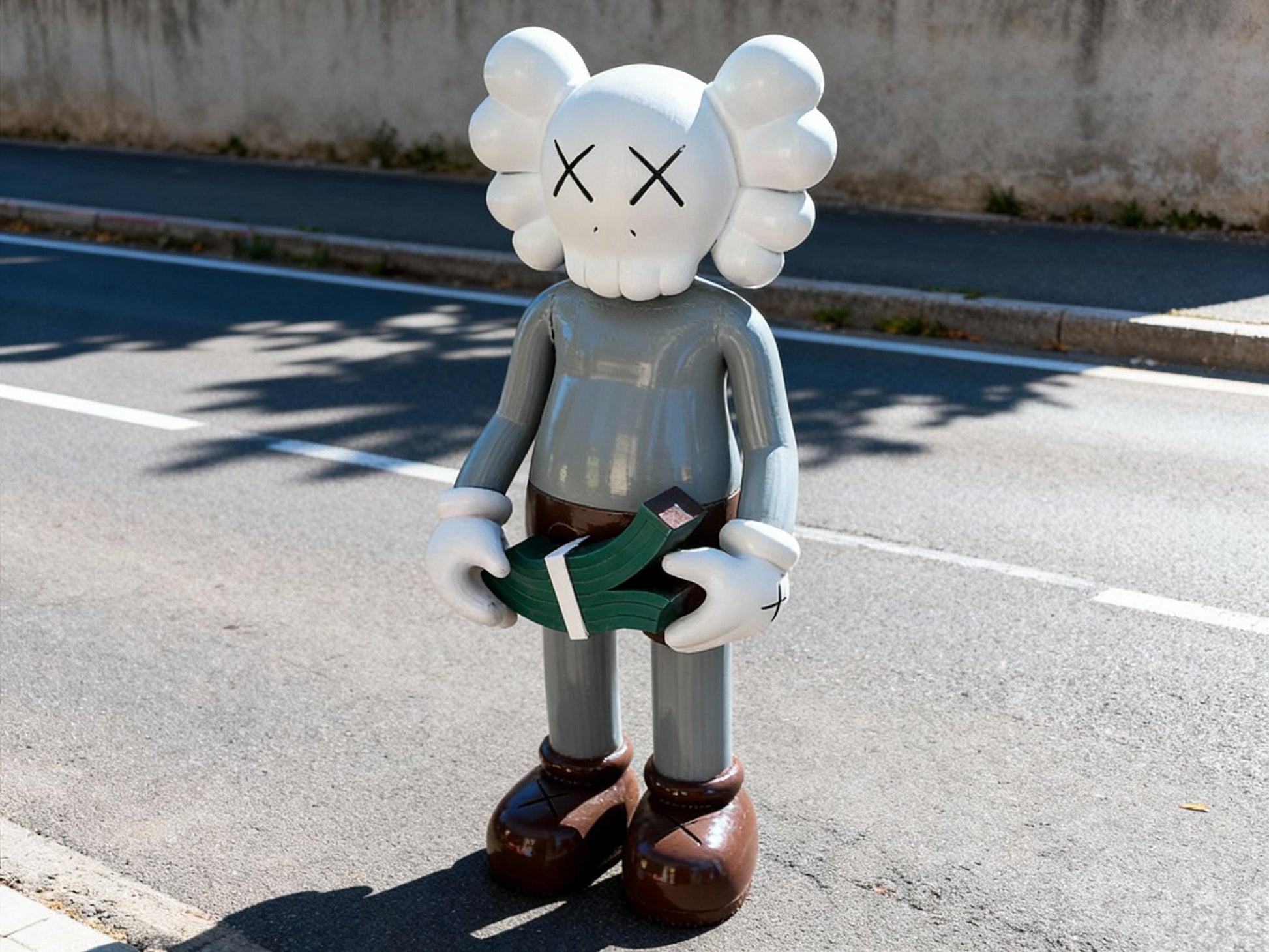Bring a bold and playful twist to your space with this KCAWS Money Counting style statue, standing at 180 cm (6 feet) tall. Featuring the iconic KCAWS Companion figure in shades of grey, white, and brown, this sculpture captures a fun, street-art-inspired moment — holding stacks of money 💸🖤